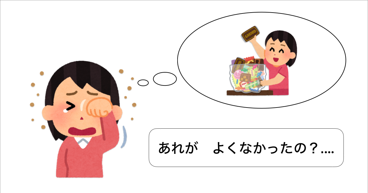 ちなみに、私自身はスナック菓子や清涼飲料水を摂ることはあまりありません。ただ、家にはこういったものを少しは置いています。家族が食べますので。(清涼飲料水はほぼありませんが)それをたまにつまみ食いすることがあるのですが、その結果、後で後悔することになるのです。