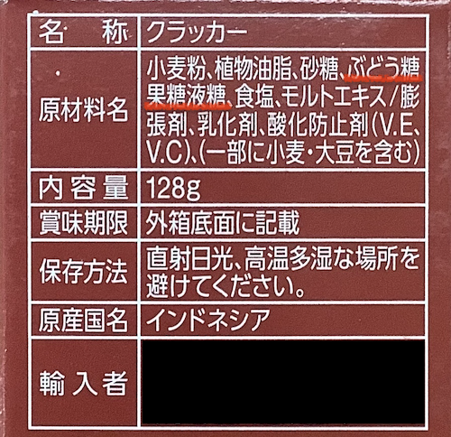 スナック菓子(クラッカー)の原材料表示の例